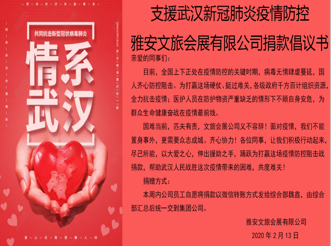 会展公司支援武汉捐款倡议