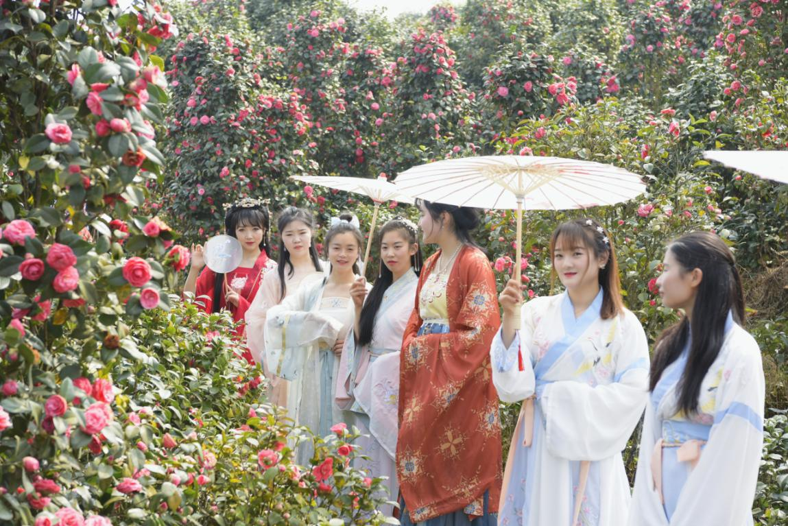 当汉服元素遇上千亩茶花 蒙顶山成春季热门旅行地