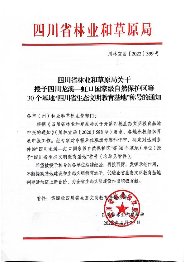 4月29日四川省林业和草原局发布第四批四川省生态文明教育基地名单,蒙顶山景区荣获“四川省生态文明教育基地”称号。