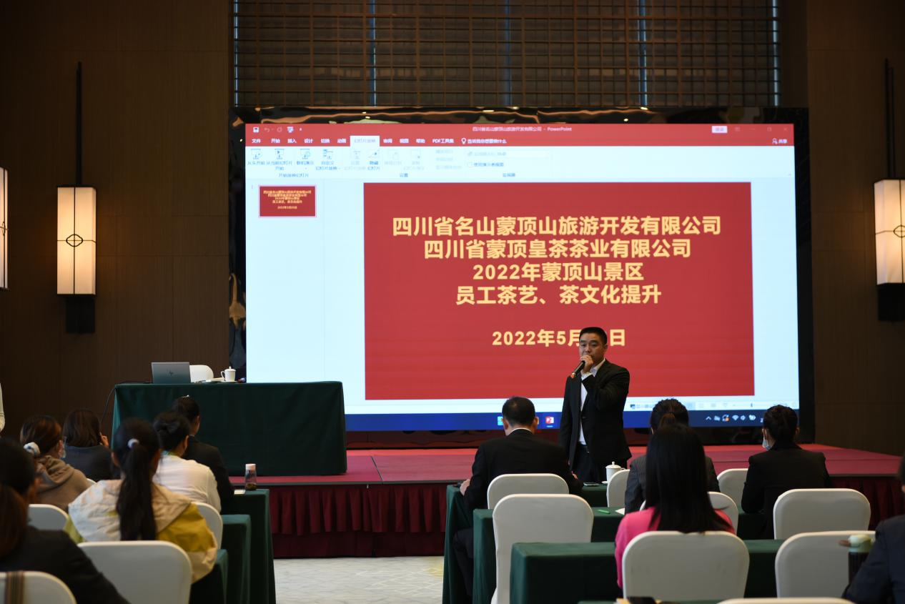 5月26日,由蒙顶山景区主办的茶艺、茶文化提升培训在蒙顶山假日度假酒店内举办,四川省贸易学校茶学教师周晓英担任主讲老师,蒙顶山景区、蒙顶皇茶茶业有限公司、蒙顶山假日度假酒店相关工作人员积极参加培训。