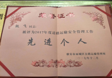 12月27日上午,雨城区运管所组织召开“2017道路运输企业安全生产工作总结表彰大会”,我公司分管负责人甄飞代表公司参加会议,本年,我公司从内部管理着手在安全生产工作中加强监管力度,完善制度保障,取得成效得到了行业主管部门的认可,本次大会,我公司获得了“雨城区2017年度道路运输安全管理工作”先进单位,我公司安全经营工作分管领导甄飞荣获“2017年度道路运输安全管理工作”先进个人。我公司一定不负荣誉,2018年继续狠抓安全生产工作,保障艺峰旅游转型发展。