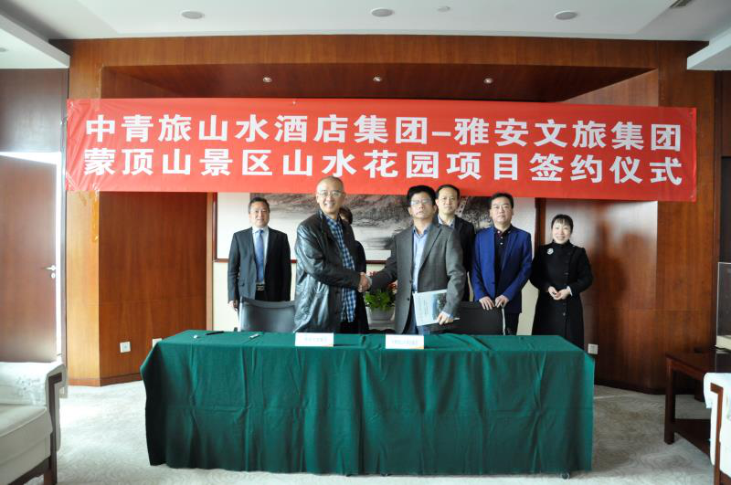 2018年3月19日,雅安文旅集团与中青旅山水酒店集团股份有限公司(以下简称“中青旅山水集团”)在北京中青旅大厦举行蒙顶山景区山水花园项目签约仪式。雅安文旅集团董事长张雅斌,中青旅控股有限公司副总裁、中青旅山水集团董事长林军,中青旅控股有限公司总裁助理、投资总监赵勇,中青旅山水酒店集团总裁助理、运营总监徐新喜出席签约仪式。