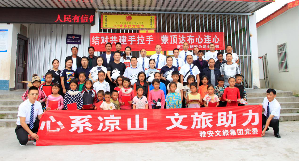文旅集团、蒙顶山旅游公司通过一周的筹备,组织广大职工捐款、捐物,累计捐赠青少年读物245本,并购买10000余元文具、体育器材、生活用品等物资。历时7小时,送抵越西县申果乡达布村,慰问贫困学生代表,勉励孩子们学习知识增强本领,依靠知识改变命运。