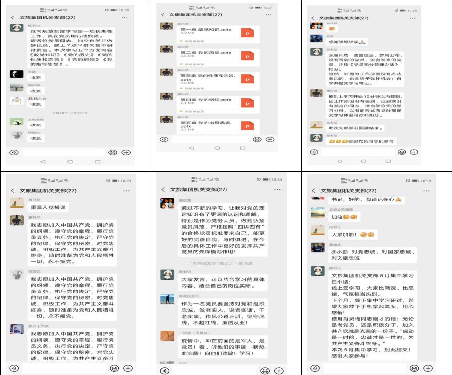 5月28日,雅安文旅集团机关支部开展“党员固定学习日”活动,机关支部党员、预备党员、发展对象、入党积极分子近30人线上云集,学习《政党知识》《党的历史》《党的性质和宗旨》《党的纲领》《党的指导思想》,并进行积极讨论发言。