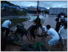 受8月10日和11日持续特大暴雨影响,雅安熊猫会展博览馆项目基坑大面积严重积水,平均积水深度达到1米多,面对持续不断地雨势和不断上涨的水位,雅安文旅会展公司及雅安熊猫会展博览馆项目部迅速反应,第一时间启动应急预案,立即组织60余名抢险人员,奋战在抢险救灾第一线。