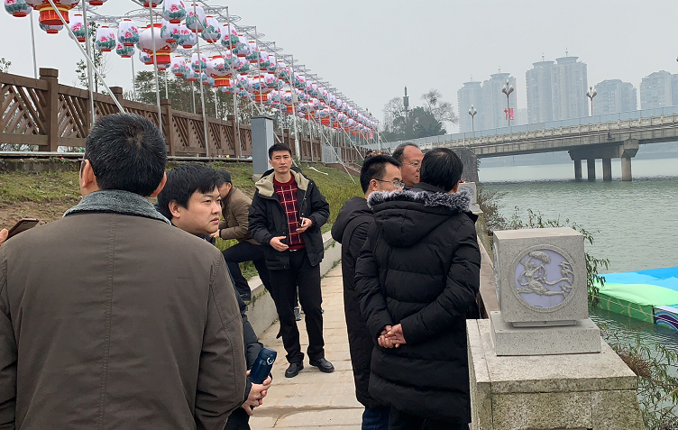 水务局副局长张勇对青衣江水位进行了查看,检查了灯会沿岸的防护设施。张勇表示已调整到灯组所需水位,在灯会举办期间文旅集团要做好实时监控工作,及时协调沟通,确保水位符合灯组需求。