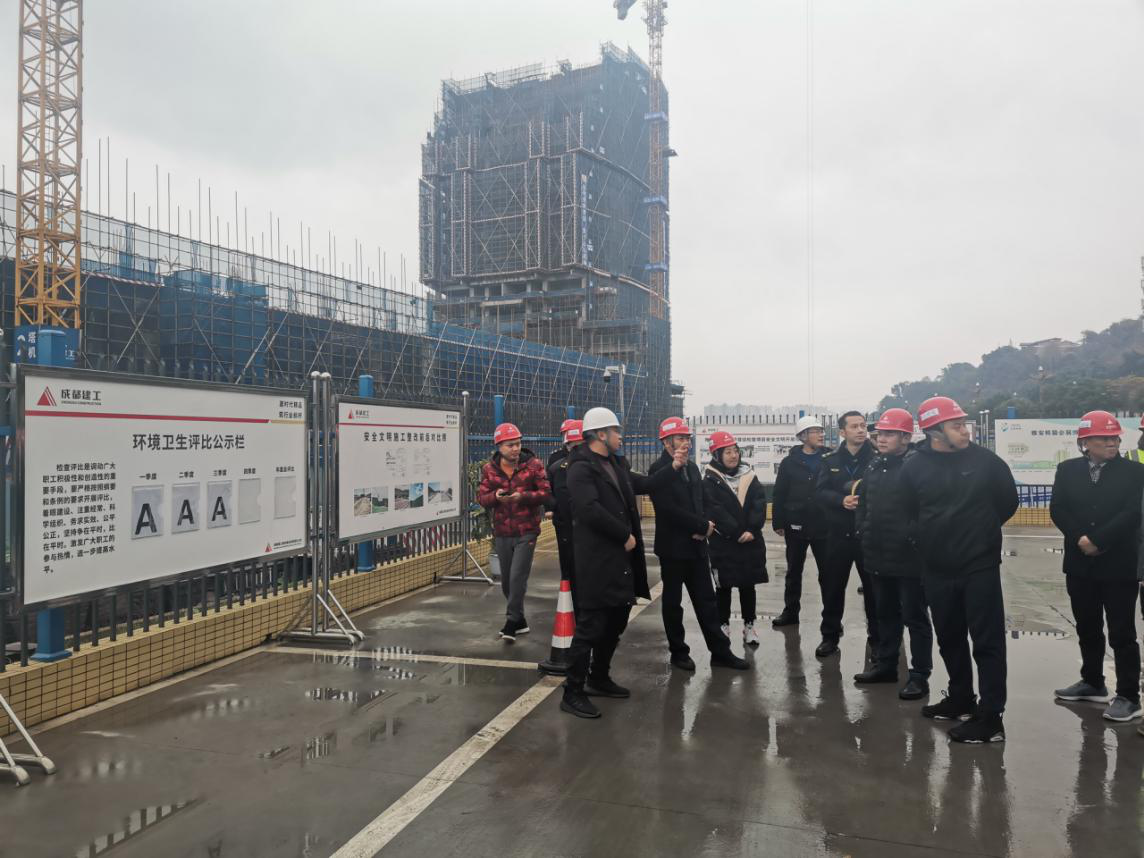 综合执法局一行听取了项目工作情况汇报,并详细查看了施工现场质量、安全、文明及环保施工。
