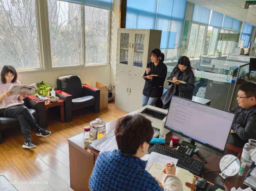 春节假期后的第二天起,综合办全体同志每日2:10准时在办公室集合,利用班前20分钟学习《人民日报》《求是》《雅安日报》《政府工作通报》等报刊和内部读物。部门员工轮流当老师,分别勾选出自己认为具有学习价值的报道或公文,为部门同事认真进行解读,其余同事跟读学习。