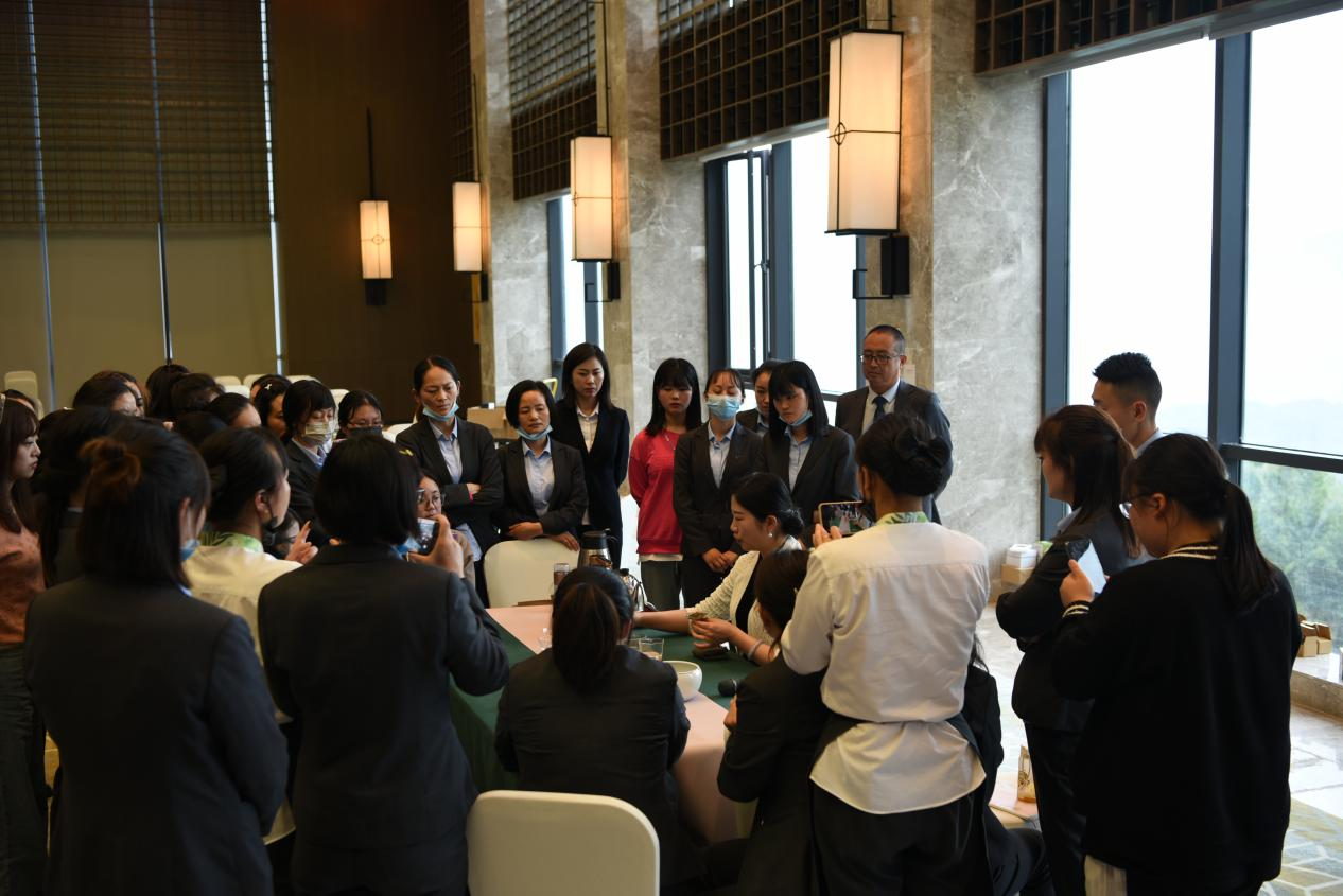 本次培训共分茶艺师职业素养、茶叶分类概述、蒙顶山茶文化历史、茶艺基础、茶艺表演与提升、蒙顶山茶冲泡技巧六小节。从茶叶的分类、蒙顶山茶的历史到选茗、择水、烹茶技术等茶艺学习,以理论知识开始,实践操作结束,丰富的培训模式。立足岗位需求,通过实践操作,不断提升服务质量,精益求精,培养综合素质强的专业茶技能人才,努力创建“服务型、学习型、创新型”景区。