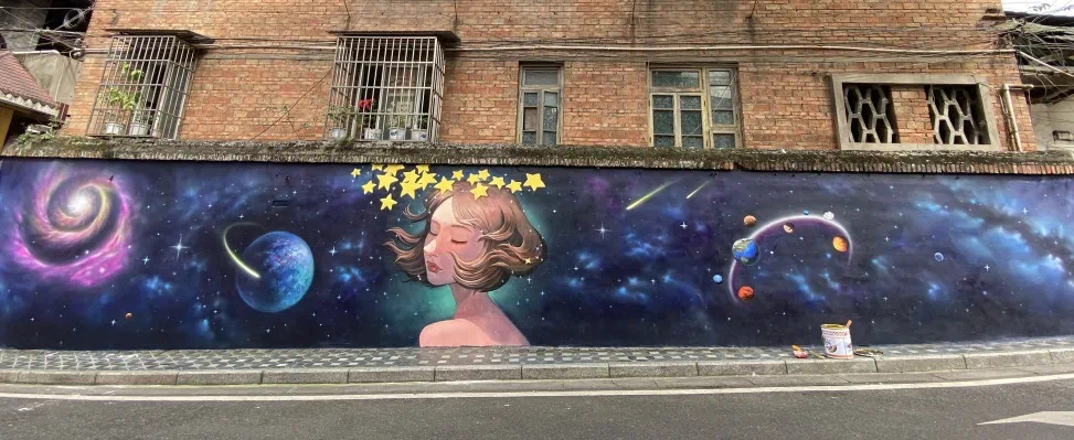 二是发挥创意设计,扮靓城市色彩。文旅集团墙绘善于创意设计矩阵搭建,作为城市形象提升的助推剂。把大熊猫城市吉祥物IP与价值观念和文化信息意识标语墙绘相结合,让“雅雅”“安安”成为精神文明建设宣传小能手;彩绘“大鱼海棠”“宫崎骏”动漫IP设计更新社区墙面,让老旧小区成了艺术街区;“金光夹金山”“蒙顶山采茶”“达瓦根扎星云”原创风景插画与国道、省道、隧道墙绘相融,为过境游客提供视觉盛宴;草坝黄金沙滩墙绘采用高饱和度配色,附加趣味打卡阵列装置,打造全市最大临江彩绘墙,春节开放以来吸引6万人次前往打卡。