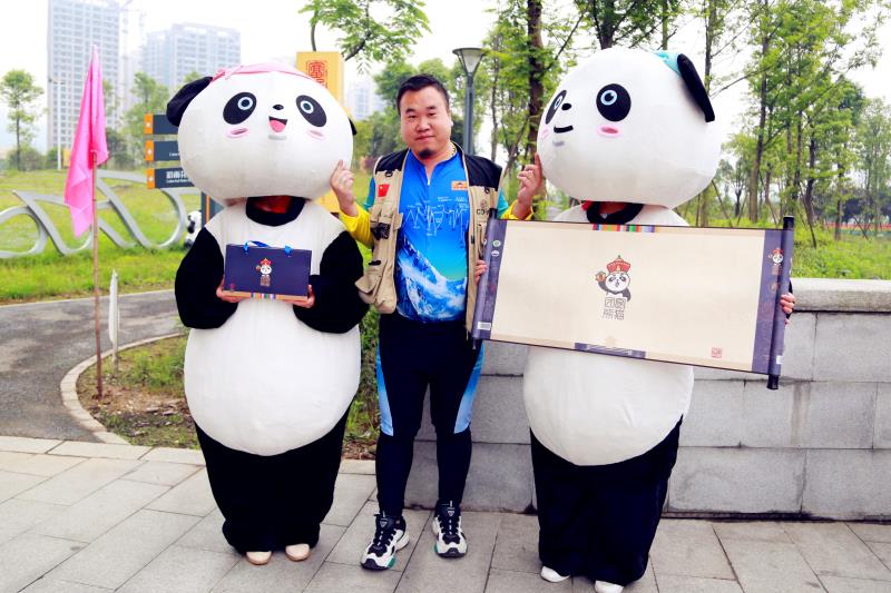 在骑游活动出征仪式上,四川省大熊猫生态与文化建设促进会向骑士赠送了熊猫纪念章,雅安文旅集团则赠送了本季文创新品——“团圆熊猫茶”,萌新可爱的“熊猫皇帝”代言雅安藏茶,引来众多骑士和现场观众合影留念,雅安市邮政局还派来工作人员为这款圣旨版熊猫茶盖上当日邮戳。